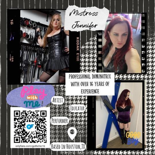 Lifter, Muscle Mommy (unshaven)- NEW Pro Domme in Training, Temptress Violet Vixen. (23yrs old),Double Pro Domme Sessions with Mistress Jennifer. Into Kink New Experienced Mistress Jennifer is Here in Houston. NOT AN ESCORT !! READ MY AD !! Appointments Available in Houston, Tx, incall- Monday, Wednesday-Thursday (eve), Friday-(day/eve), Saturday & Sunday (day/evening), Outcall-Monday, Tuesday, Wednesday, Thursday (after 6pm), Friday-Sunday-day/eve, $400/HR-(both) Incall, $600/HR-Outcall (Galleria, Downtown, Montrose, Heights, Upper Kirby-Nice Hotels-screening required). . Professional Dominatrix over 17 years. Spanking, Bondage, cbt, tease & denial, enemas, electro, sounds, toys, cross dressing, adult babies, humiliation, medical fetish, smothering, wax play, foot fetish.. Book Your Session Today !!! instagram-jenanddalton52, twitter-gothchic16,snapchat-msjenn55 check out my AllMy Links-mistressjennifer41(@mistressjennifer41) |AllMyLinks A am meeting Men only |